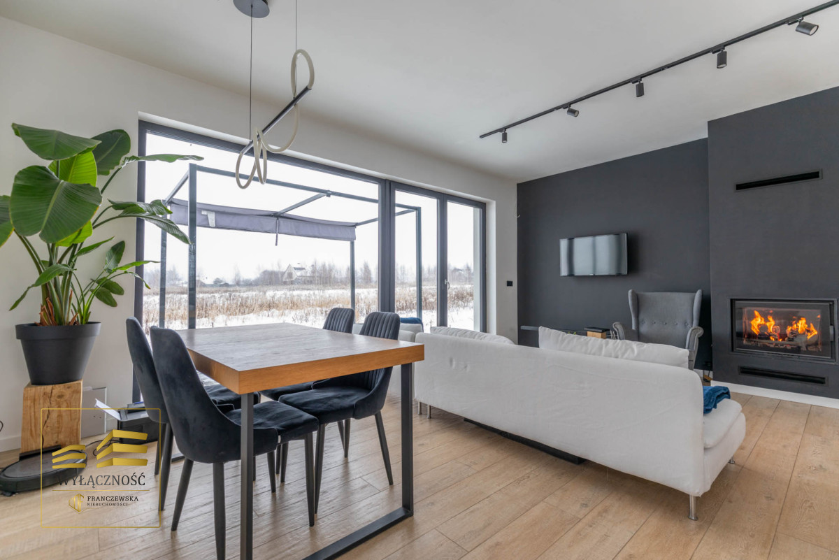 Dom o powierzchni 120,69 m² został wybudowany według projektu „Dom w kosaćcach 2 (GN) " na działce o powierzchni 691 m² . Nieruchomość ogrzewana elektrycznie (ogrzewanie podłogowe z możliwością sterowania z telefonu ) oraz kominkiem tradycyjnym. Dom podłączony do sieci wodociągowej i kanalizacyjnej