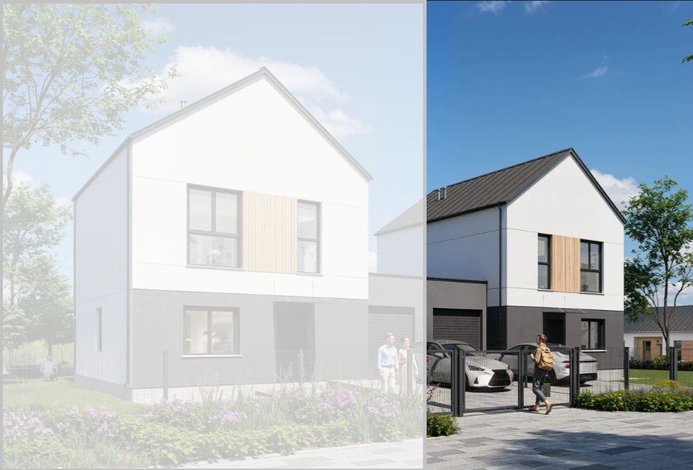 Nowy 5 pokojowy dom w zabudowie bliźniaczej ( połączony garażami) w standardzie deweloperskim, o powierzchni 122,38 m2, na działce o powierzchni 400 m2 w Mętowie, gmina Głusk, woj. lubelskie.
