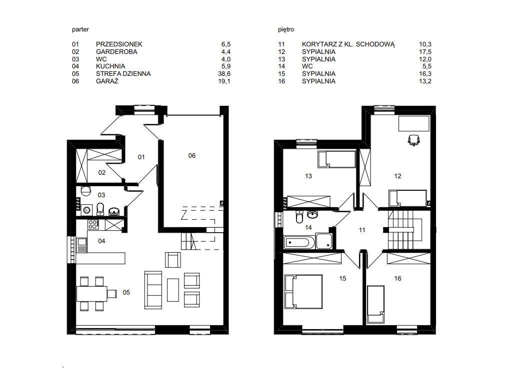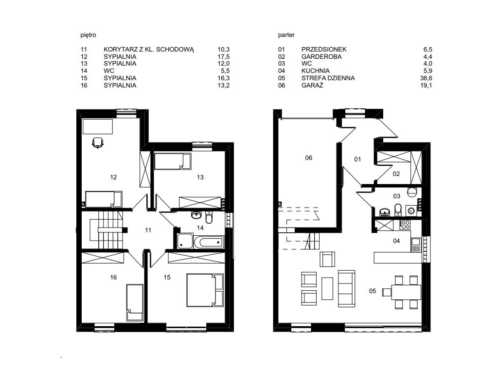 - Garaż jednostanowiskowy 19,10 m2.