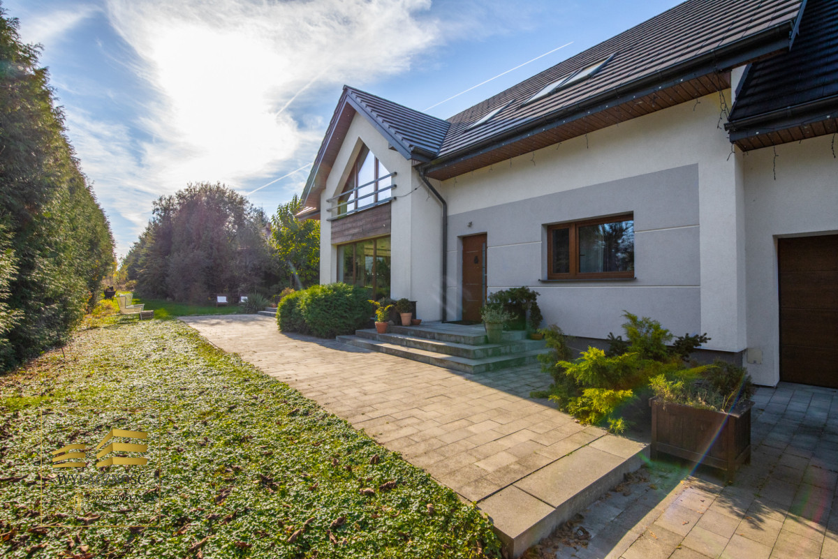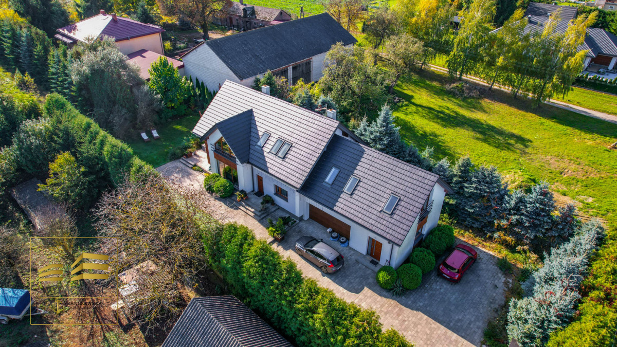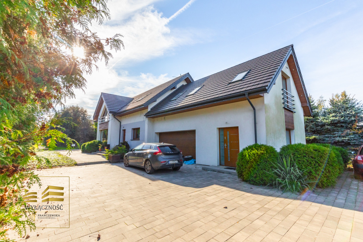 Nowoczesny dom z 2016r. w Lublinie przy ul. Biskupie o pow. całkowitej 341,50m2 (z czego pow. użytkowa to ok. 224,81 m2) z dwustanowiskowym garażem w bryle budynku na działce o pow. 7646 m2.