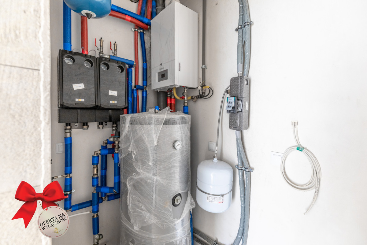 Ogrzewanie kocioł gazowy kondensacyjny - De Dietrich, Woda, dwa szambo, prąd, gaz. Ogrzewanie podłogowe, wentylacja grawitacyjna, instalacja solarna wraz z urządzeniami, termostaty ( indywidualne sterowanie każdego pomieszczenia)