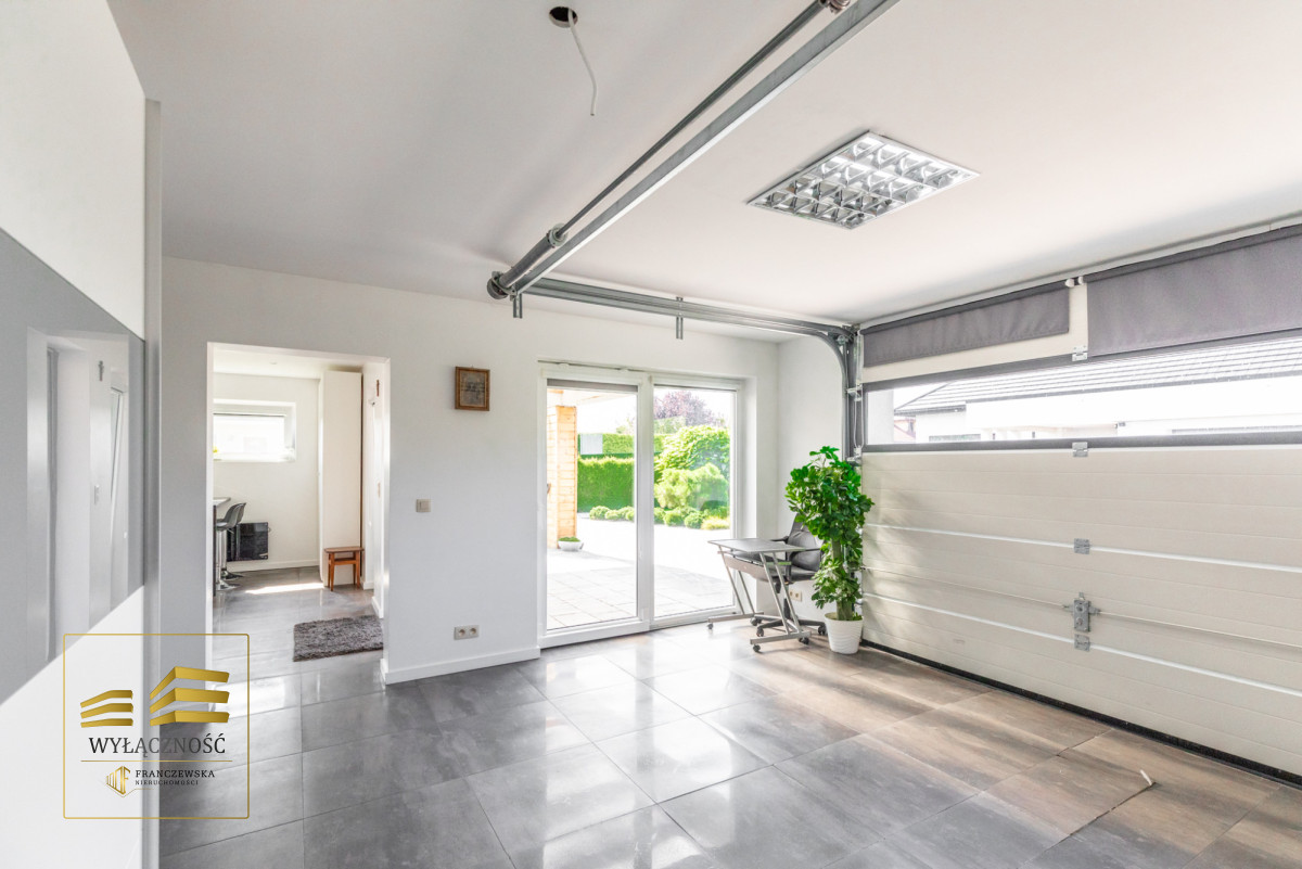 - Garaż: dwustanowiskowy w bryle budynku (ok. 36m²)