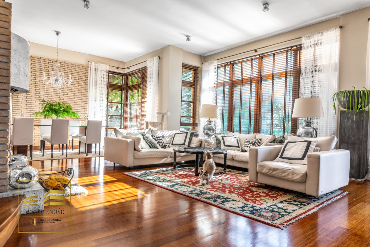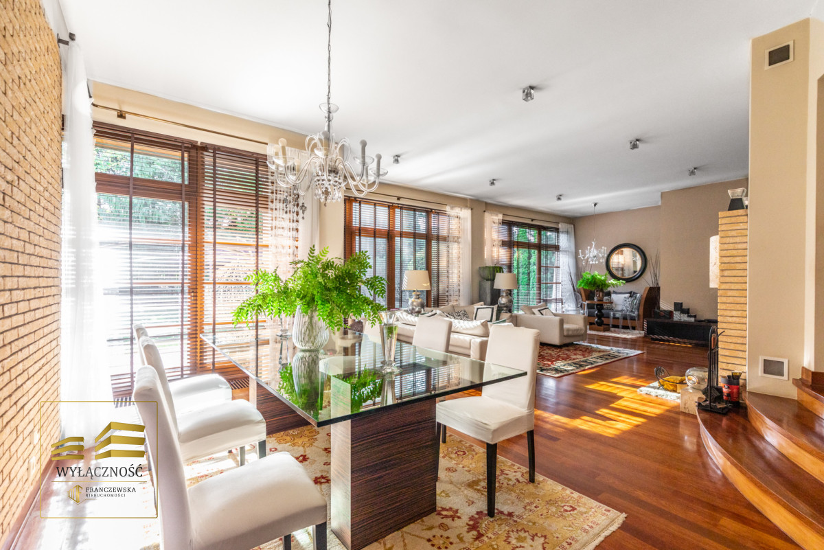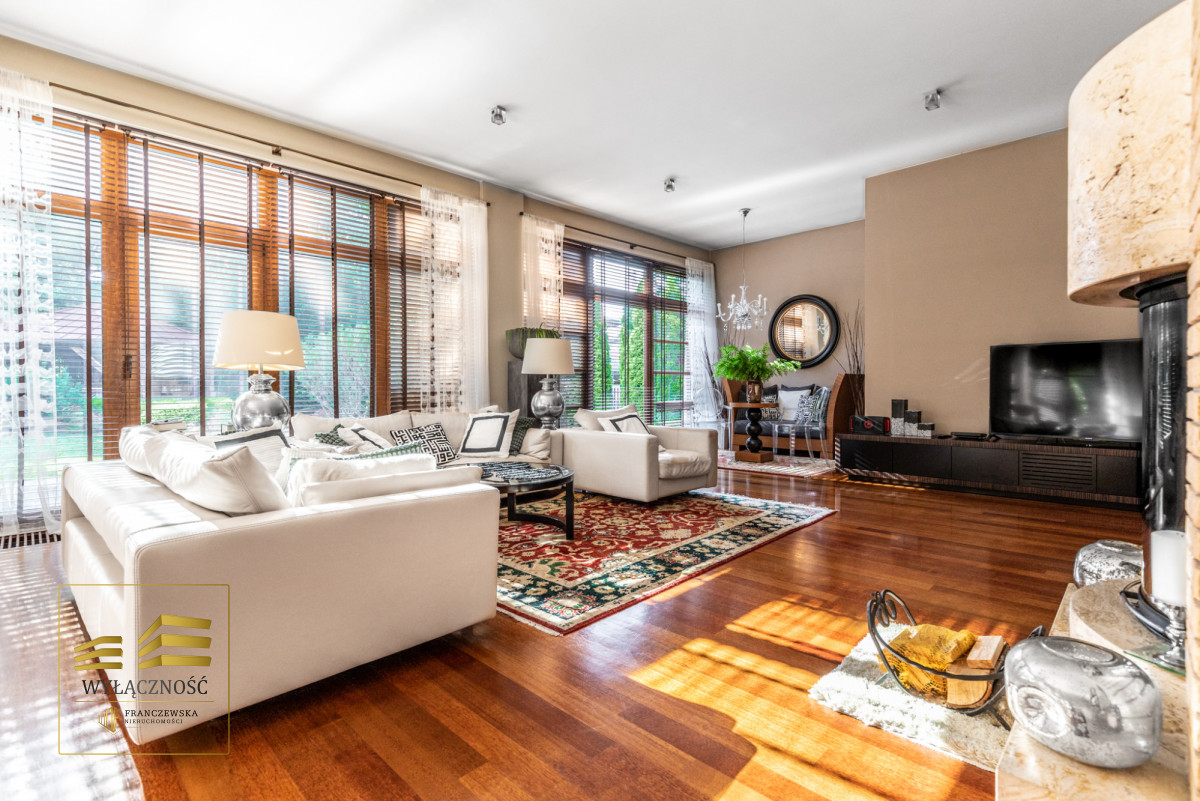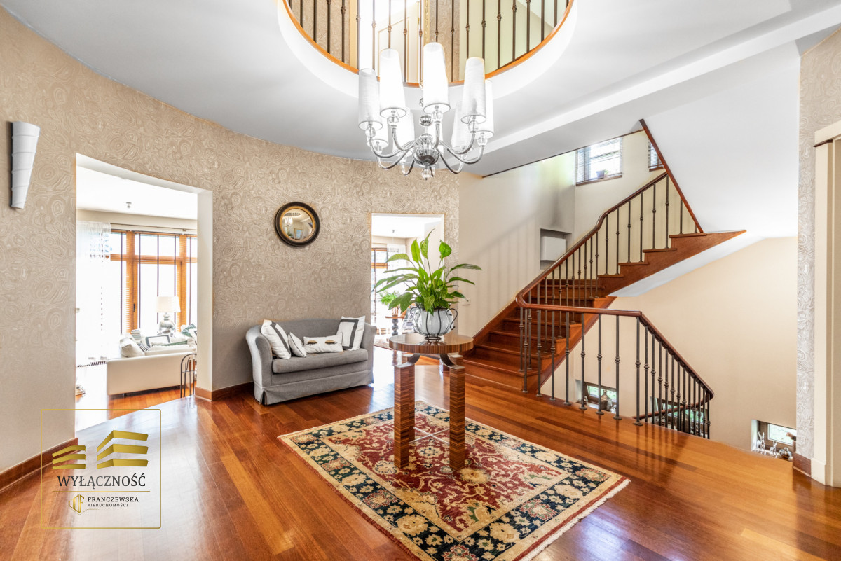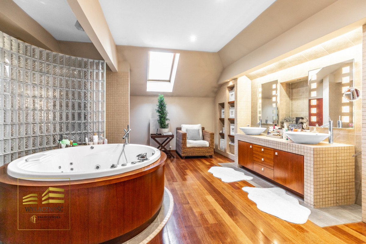 Podłogi i schody z drewna egzotycznego, odporne na wodę i ścieranie, oświetlenie strefowe we wszystkich pomieszczeniach, ponadstandardowe wysokości pomieszczeń ( ok 3,5 m),
