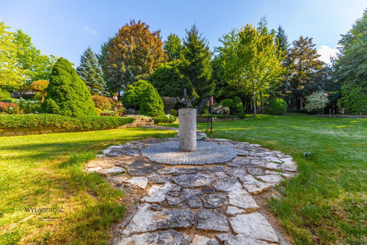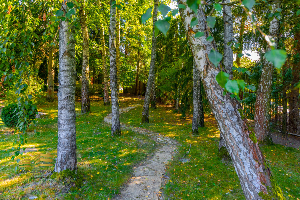 W ogrodzie altana z piecem grillowym, liczne nasadzenia, alejki, przed domem parking na kilka samochodów, bramy wjazdowa i garażowa automatyczne.