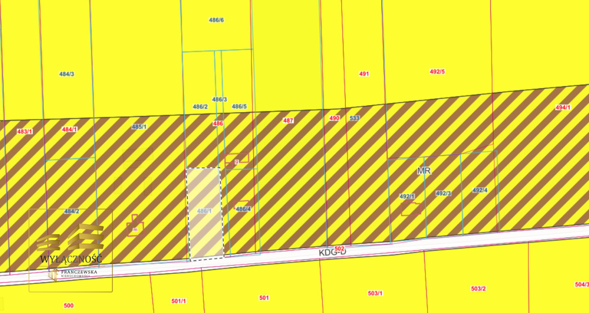 W ofercie posiadamy również działkę nr 486/1 w pierwszej linii zabudowy o pow. ok. 1627m2.