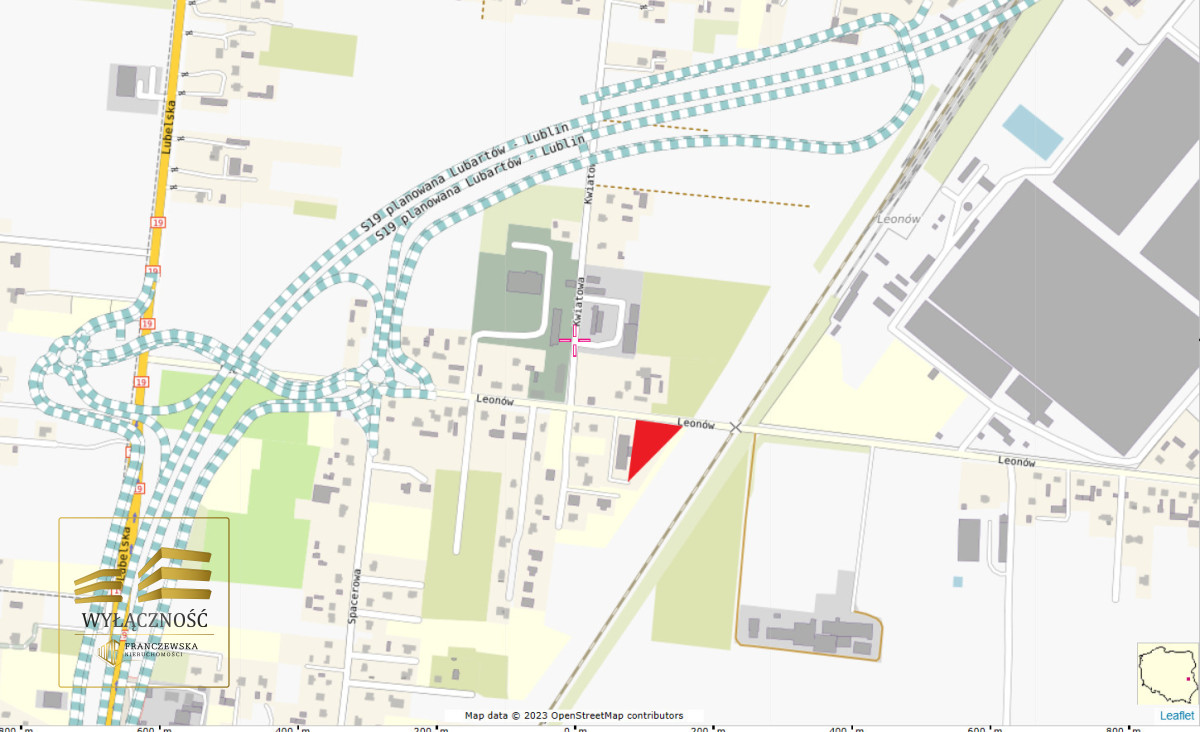 LOKALIZACJA:Nieruchomość na sprzedaż zlokalizowana przy ul. Leonów w gminie Niemce. Ok. 700m od drogi S19 trasa Lublin-Lubartów i planowanej obwodnicy Niemiec.