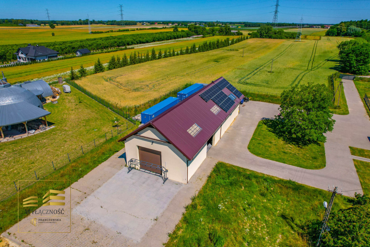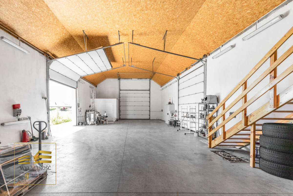 HALA Z SUSZARNIĄ o łącznej pow. ok 270 m2: hala z 3 bramami automatycznymi, suszarnia, pom. gospodarcze, łazienka z toaletą, dodatkowa powierzchnia na półpiętrze (biuro) z łazienką.