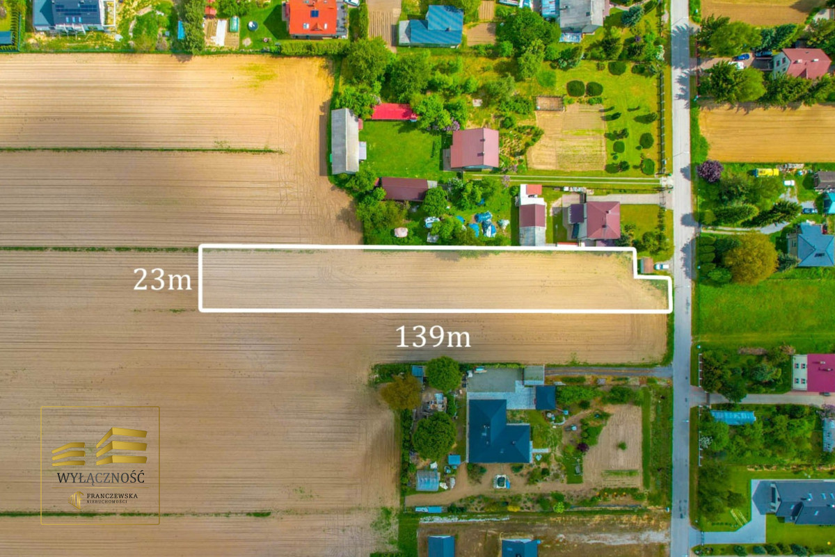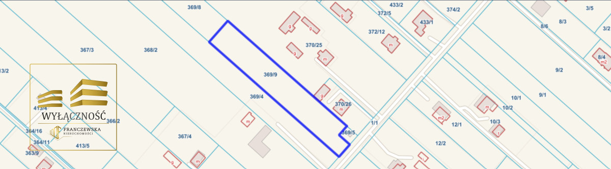 Działka o pow. 3000 m2 w kształcie prostokąta o wymiarach 23mX 139 m usytuowana jest w pierwszej linii zabudowy bezpośrednio przy drodze asfaltowej o numerze 369/9