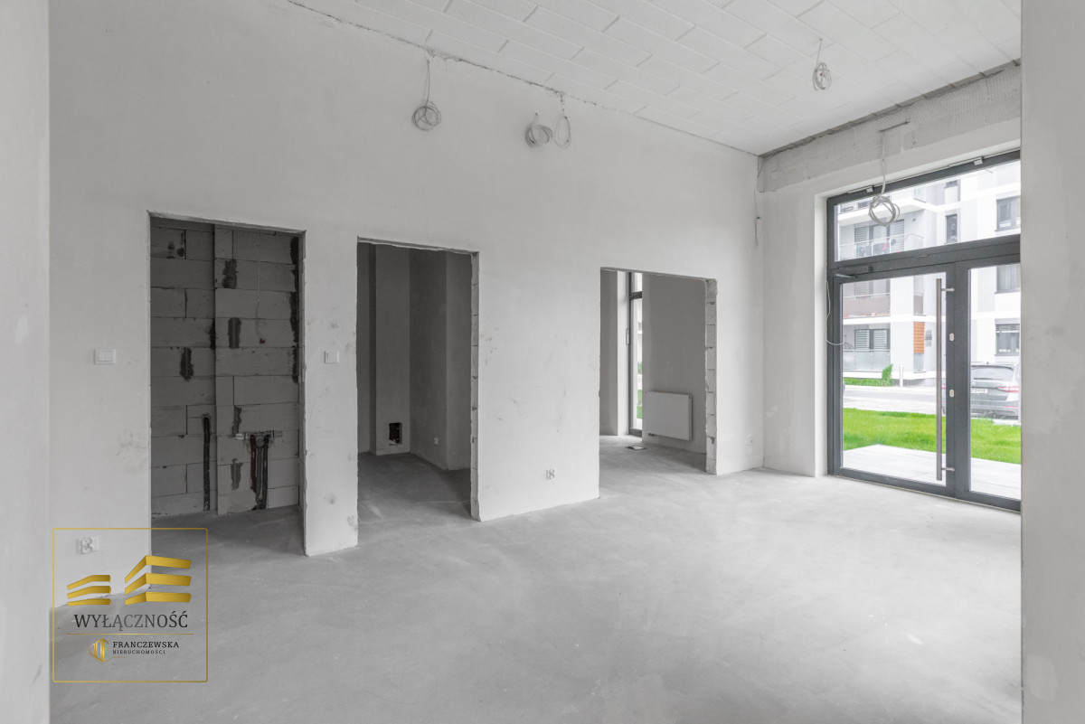 - Wysoka elastyczność aranżacji: lokal w stanie deweloperskim z możliwością dostosowania do specyfiki działalności.