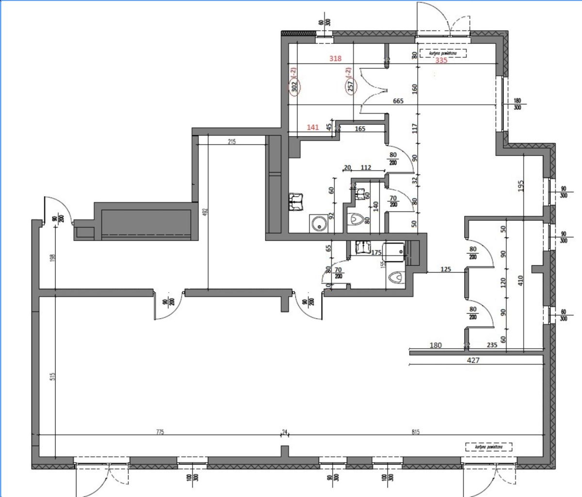 - Wysokość pomieszczeń: ok. 3 m,