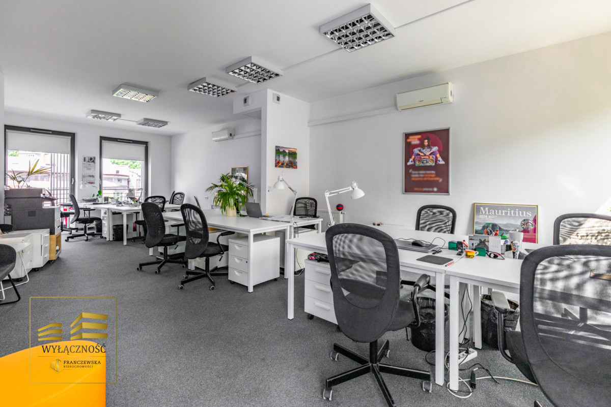 - Wyposażenie: Klimatyzacja, wykładzina obiektowa, oświetlenie biurowe.