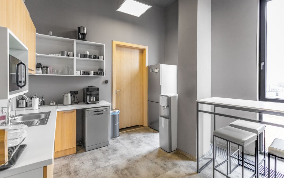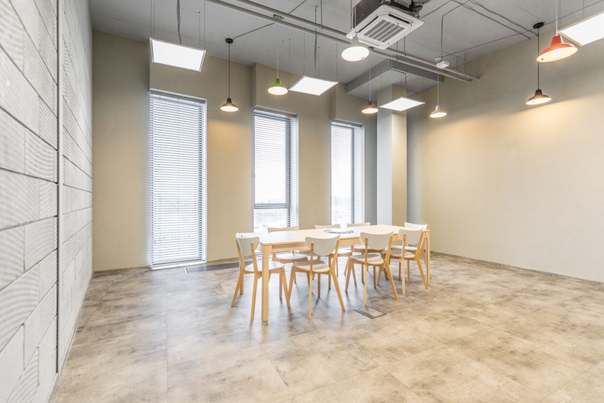 - Infrastruktura IT: Wyposażony w podłogę techniczną z floorboxami oraz światłowód, co zapewnia łatwą aranżację stanowisk pracy i szybką łączność.