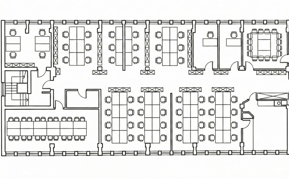 - Układ: Funkcjonalny open space z możliwością wydzielenia mniejszych gabinetów lub sal konferencyjnych.
