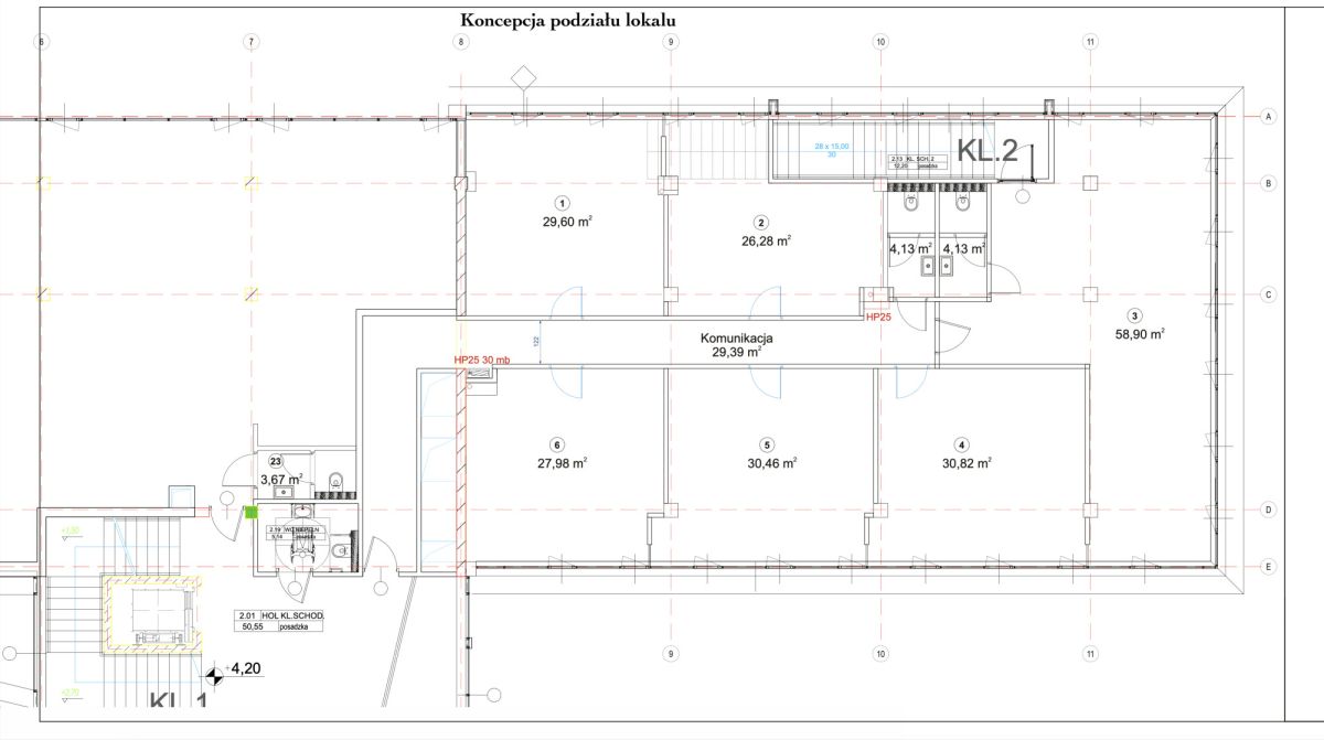 - Lokal z dwoma wejściami: z holu budynku oraz niezależnym wejściem zewnętrznym, co jest szczególnie korzystne dla branży medycznej,