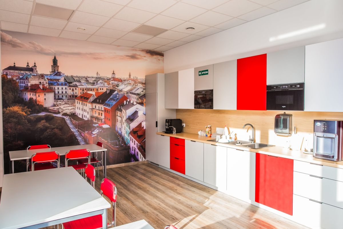 - Inwestycja w Komfort Zespołu: Nowoczesna, w pełni wyposażona kuchnia z jadalnią, budki telefoniczne do poufnych rozmów oraz wydajna klimatyzacja zapewniająca idealne warunki pracy przez cały rok.
