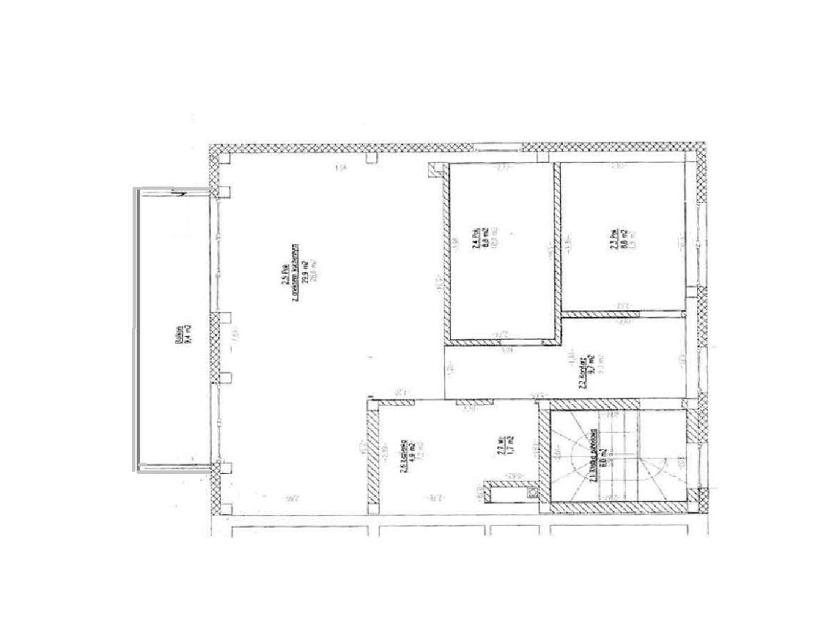 2 pokoje, duża łazienka, przedpokój, klatka schodowa indywidualna dla mieszkania, oraz strych.