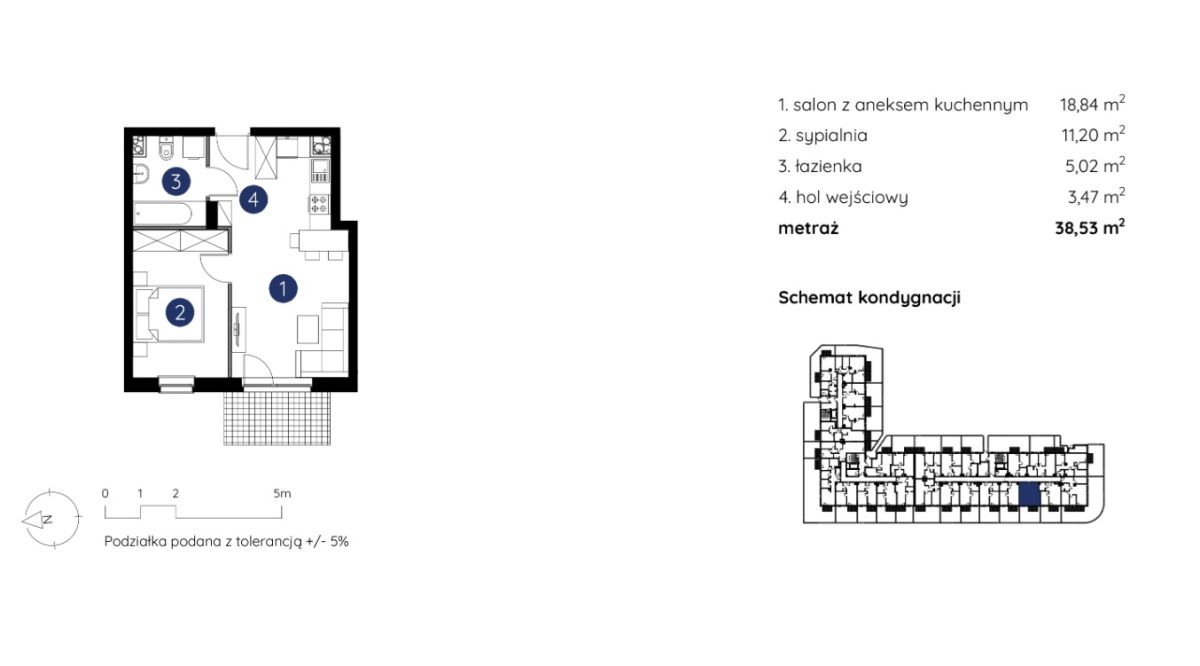 Dwupokojowe mieszkanie o powierzchni projektowej 38,53 m2 na parterze / 5 p.