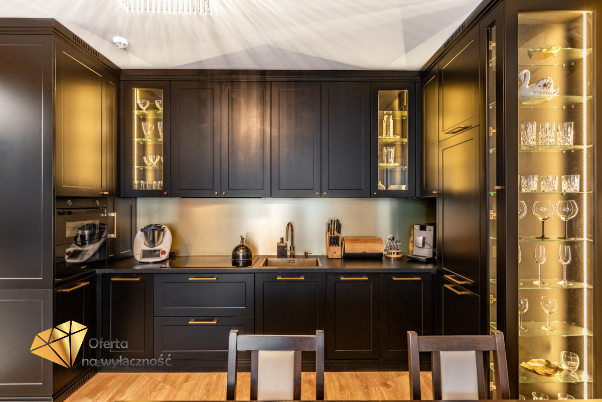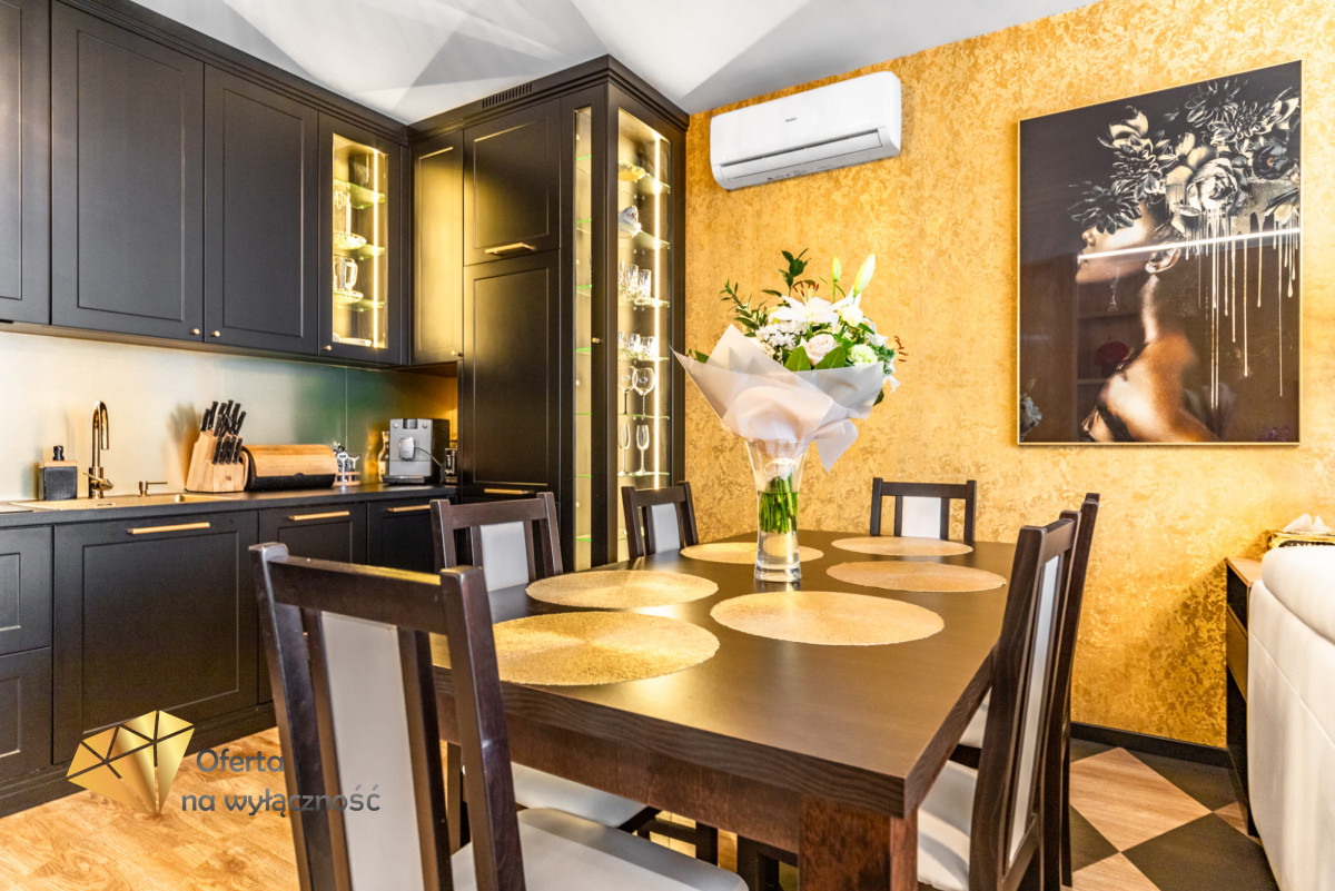 - Wyposażenie: zabudowa kuchenna, sprzęt AGD, zabudowa stała;