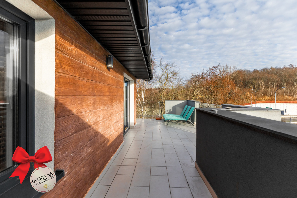 Dwa poziomy, dwa balkony, duży taras i ogród dają poczucie przestrzeni. Część powierzchni ogrodu wyłożona została kostką w przygotowaniu podłoża pod altankę i miejsce na grilla. Wysokiej jakości wykończenia i przemyślany układ sprawiają, że nieruchomość jest gotowa do zamieszkania bez dodatkowych nakładów.