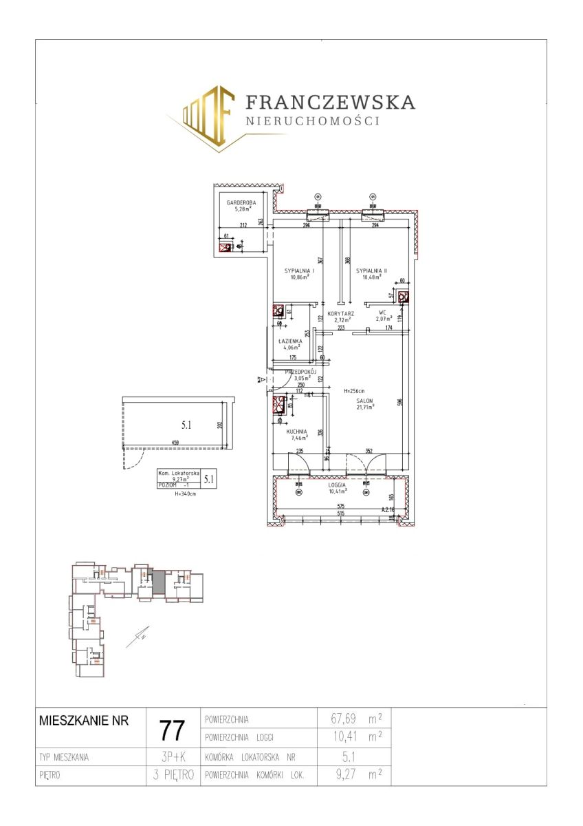 oraz komórki lokatorskiej w cenie 3 000 zł/m2.