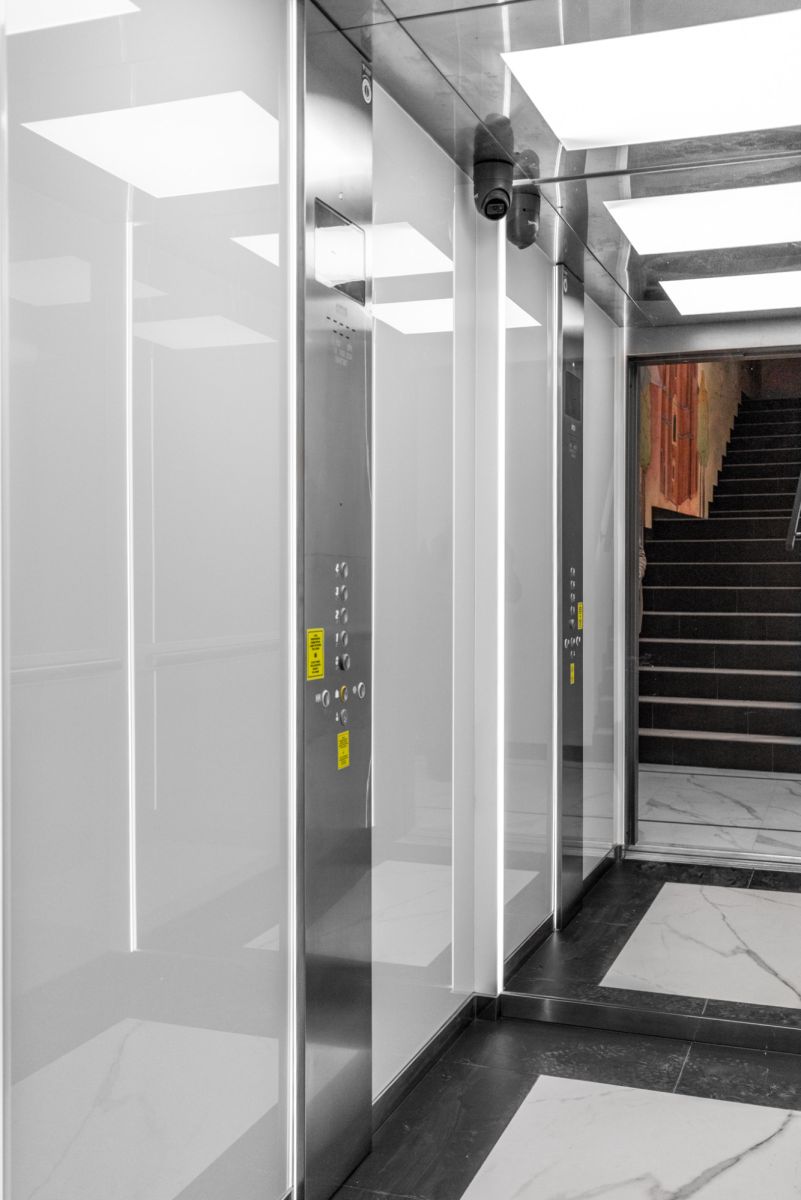 - Oświetlenie LED na częściach wspólnych, aktywowane czujnikami ruchu