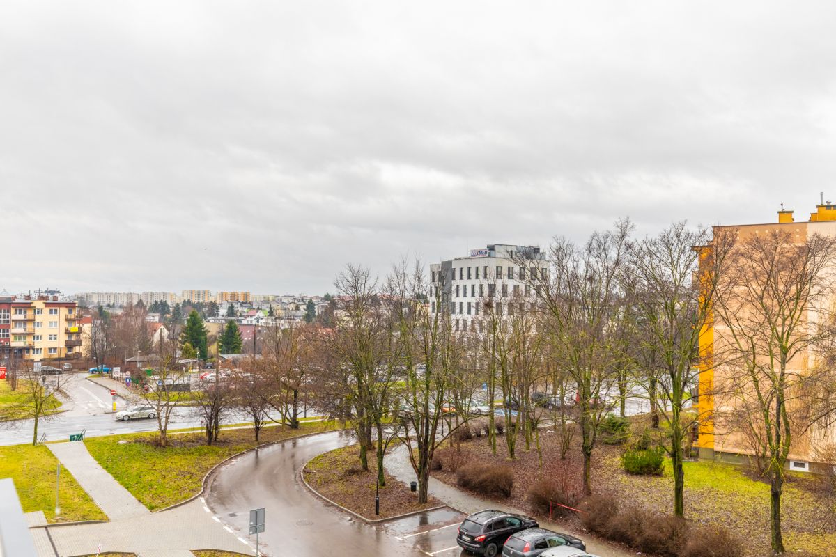 Mieszkanie z zachodnią ekspozycją okien z widokiem na zielony skwer.