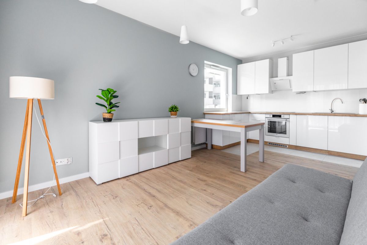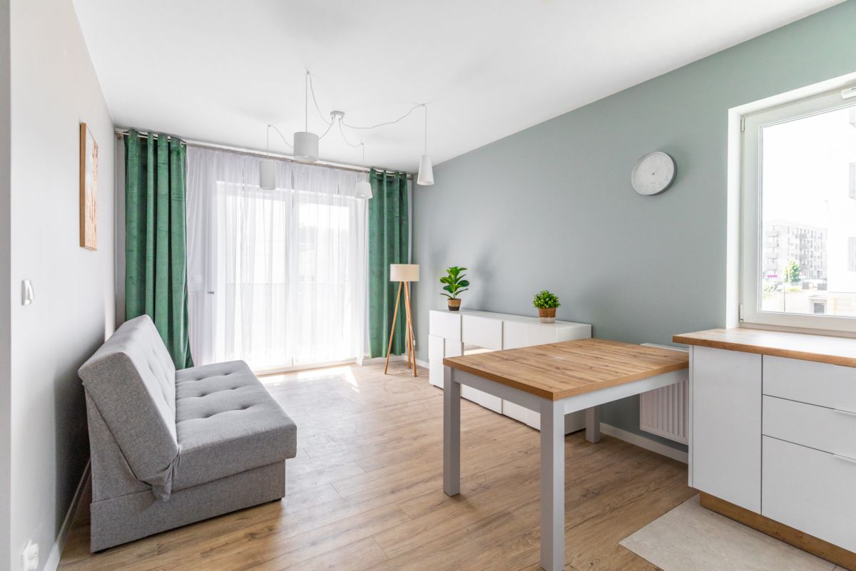 - pokój dzienny z aneksem kuchennym i wyjściem na balkon