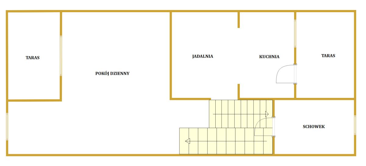 - kuchnia z jadalnią o pow. 17,3 m2, otwarta na salon i z wyjściem na taras