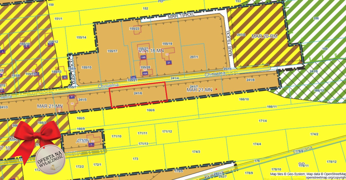 Działka budowlana nr 241/6 o pow. 1966m2 w Marysinie, ul. Chmielna.