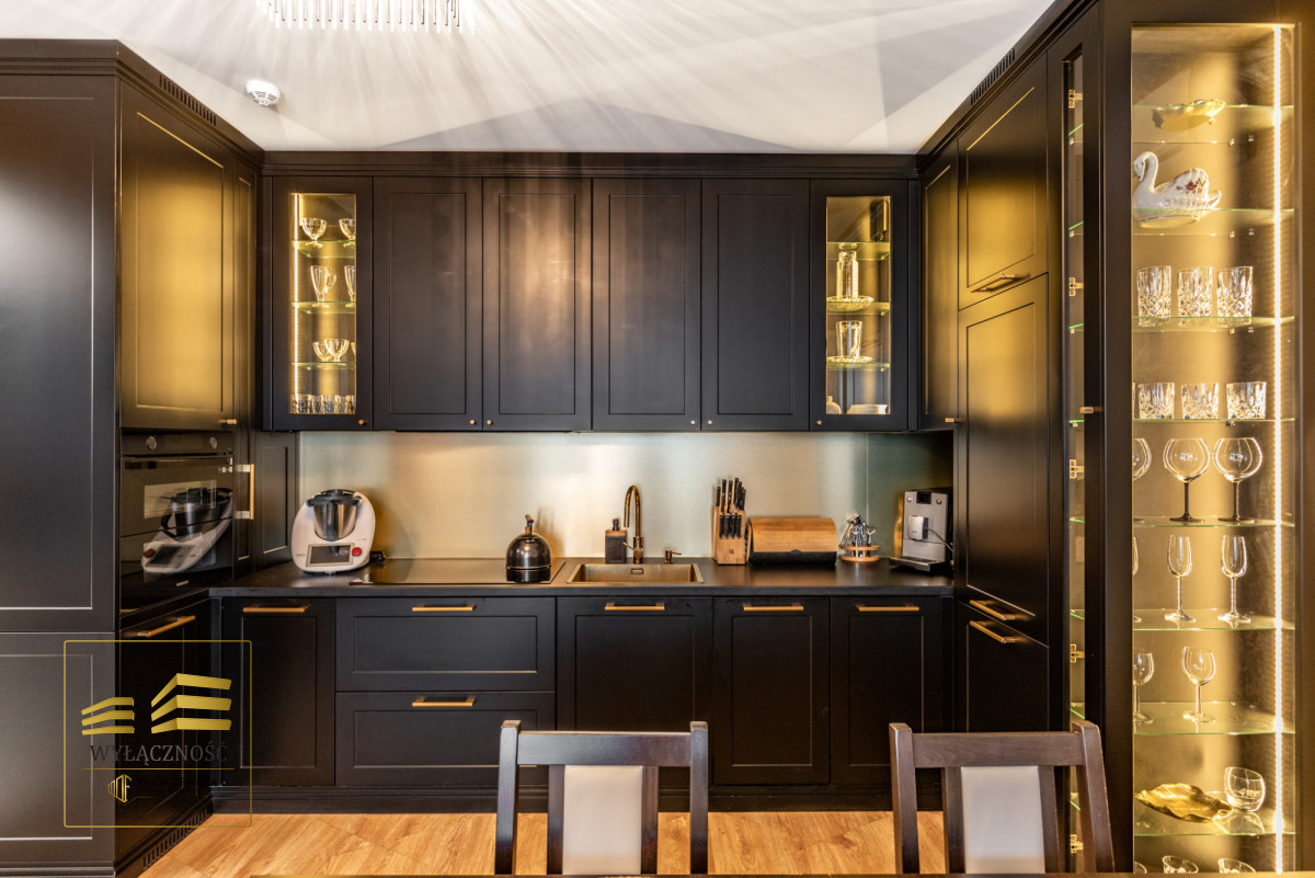- Wyposażenie: zabudowa kuchenna, sprzęt AGD, zabudowa stała;