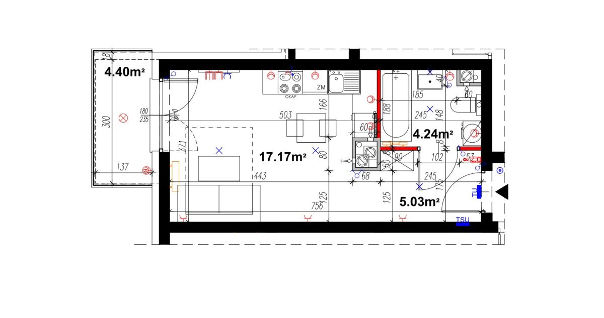 - Pomieszczenie dziennego pobytu z aneksem kuchennym o pow. 17,17 m2,
