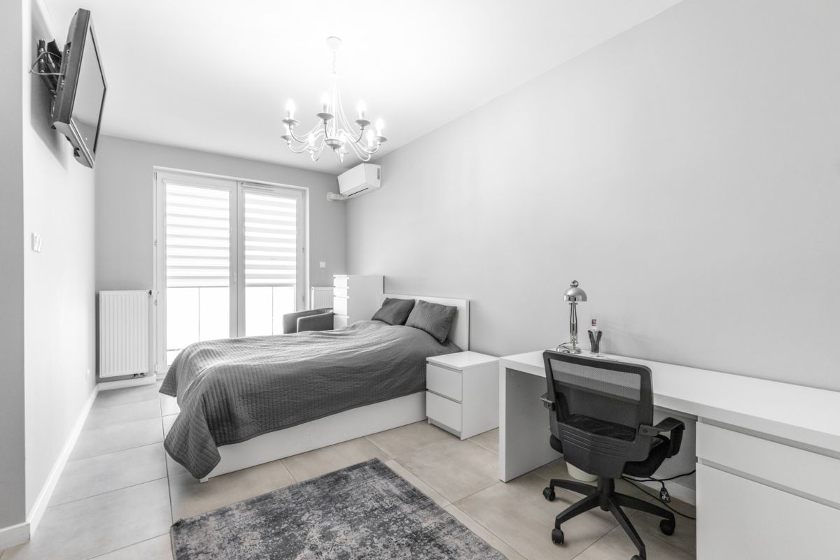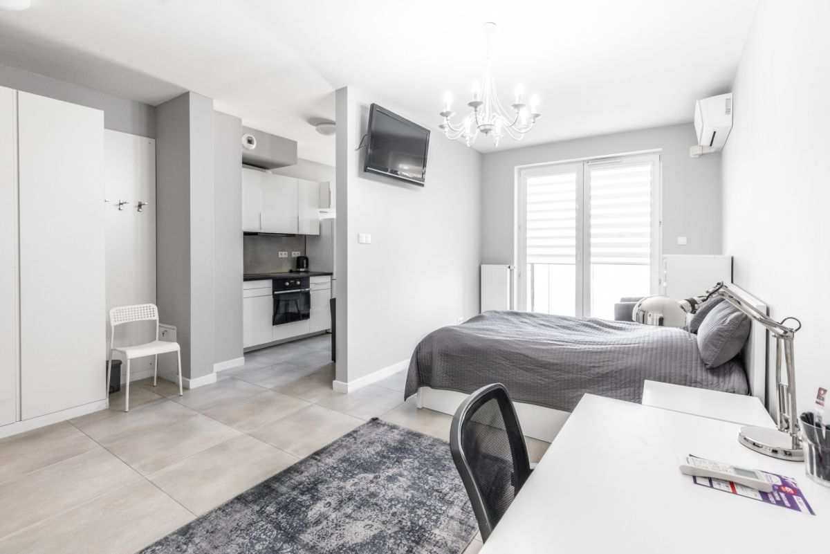 składa się z oddzielnej sypialni oraz kuchni, balkon